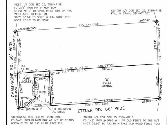 Parcel of land the South 1/2 of the South 1/2 of the Southwest 1/4 of Section 25, T18N-R11E, Lake Township, Huron County.