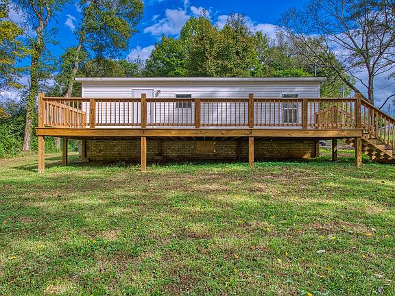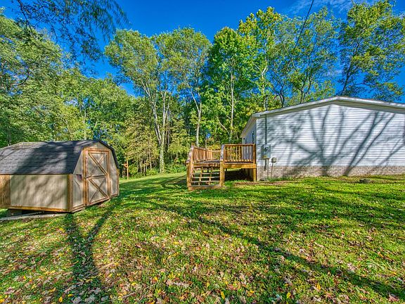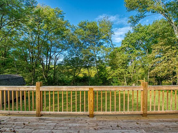 Sit out back on the huge deck and look out onto the field behind you. Property has a storage building.