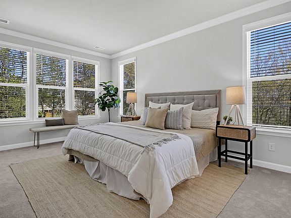 Nestled within our brand-new community, Renaissance at White Oak, this two-story townhome boasts a rear load 2-car garage and three bedrooms alongside two and a half bathrooms. Enhanced by a sleek, modern fireplace in the great room that connects with the kitchen and eat-in space. Positioned on the second floor, the primary suite showcases a large 5' tile walk-in shower, dual vanities, a water closet, and two walk-in closets. Down the hall, two secondary bedrooms await, complete with their own closets and access to a shared full bathroom. Conveniently located Just outside of the secondary bedrooms, is a laundry room closet. Not only is this townhome a great value in Garner, but it is also located within SIX minutes to White Oak Shopping Center! Convenience coupled with affordability!