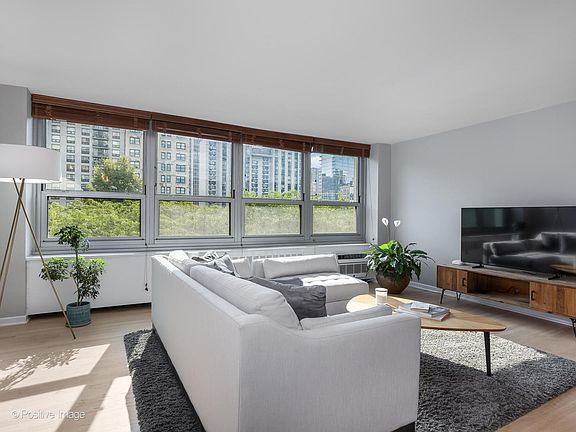 INVESTOR-FRIENDLY. Beautifully updated one-bedroom, one-bath condo in the Eliot House at Sandburg Village. Perfectly located between Old Town and Gold Coast. Just above the tree line, this home features great natural light and a comfortable, convenient layout. Hardwood floors throughout the living area and bedroom. An open kitchen features white cabinetry, stainless steel appliances, quartz countertops, a breakfast bar, and a custom backsplash. The Eliot House offers an updated roof deck with incredible skyline and lake views, 24-hour door staff, a laundry room, and an assigned storage locker. Parking is available on a waitlist basis ($160/mo) for a garage space. Sandburg Village outdoor pools and tennis courts are available for an additional fee. Residents enjoy an unbeatable location just steps from Lake Michigan, Lincoln Park, Wells Street, the Clark/Division Red Line stop, FFC gym, and downtown. Ideal for buyers seeking everyday convenience in a prime location.