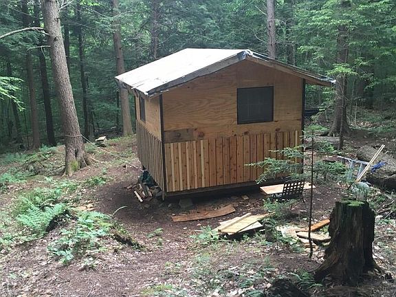 Private and quiet 10 acre parcel with an existing cozy Artist/Writer/Reader Cabin with custom exterior bar, table and fire pit, nestled under a beautiful hemlock grove. Outside perimeter of property is hugged by an old logging road. Higher elevation on back side of lot has filtered view of St. Regis Mountain's fire tower. Higher elevation in front side has filtered view of Church Pond in the winter. You will enjoy various tree species such as Hemlock, Maple, Beech and Birch providing privacy and fall foliage. Property is located between Church Pond and Hoel Pond. Saranac Inn Golf Club and Upper Saranac Lake public boat launch are at your fingertips. Property is APA approved for building. Driveway is cleared and home site is partially cleared, perc test done, electric available. This Adirondack oasis is ready for your dream home or camp, minutes from XC skiing, hunting, hikimg, swimming, paddling, camping.