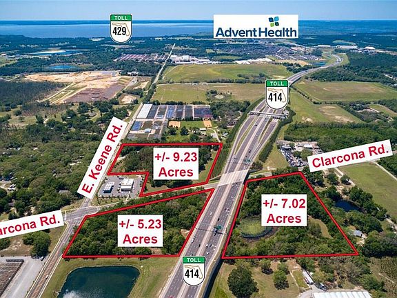 7.03 ACRE COMMERCIAL C-C PARCEL IN APOPKA FOR SALE. (4.67 Net usable acres) with a beautiful pond on the property which would be beautiful for Senior Living, Assisted Living, etc. This parcel Is perfect for your business and w/in 2 MILES of the NEW ADVENT HEALTH HOSPITAL APOPKA (Near Keene Road and Ocoee Apopka Road) Your business signage will have exposure from SR 414 Maitland Blvd. Expressway to SR 429. This parcel is ideally located near a High Traffic RED LIGHT INTERSECTION of Keene Road & Clarcona Rd, near the NEW BP GAS STATION & CIRCLE K CONVENIENT STORE also W/IN 1/4 MILE FROM THE ON/OFF RAMP (EXIT 6) OF SR 414 Via KEENE RD & MAITLAND INTERSECTION. This C-C Parcel is zoned for MEDICAL & PROFESSIONAL OFFICES, ASSISTED LIVING, SENIOR LIVING, DAYCARE, RETAIL, SHOWROOM, POST OFFICE, THEATER, BANK, RESTAURANT, much needed DRIVE THRU FAST FOOD, or MULTI-FAMILY UNITS, MOTEL, STORAGE, The City of Apopka is open to many uses! The seller also has 2 OTHER PARCELS FOR SALE located across the street (MLS# o5708365, o5703803) The WEST ORANGE BIKE TRAIL is located directly along this property. Sellers other 9.23 ACRE PROPERTY IS FOR SALE. UTILITIES & WATER ARE LOCATED ON THE SITE! These properties are located In the "City Of Apopka," which is the 2nd largest city in Orange County. There is incredible amount of Residential Growth & development near this site & has become such a demand area! Seller already has Phase 1 environmental studies, Survey, Boundary & topographic survey, just needs to be updated
