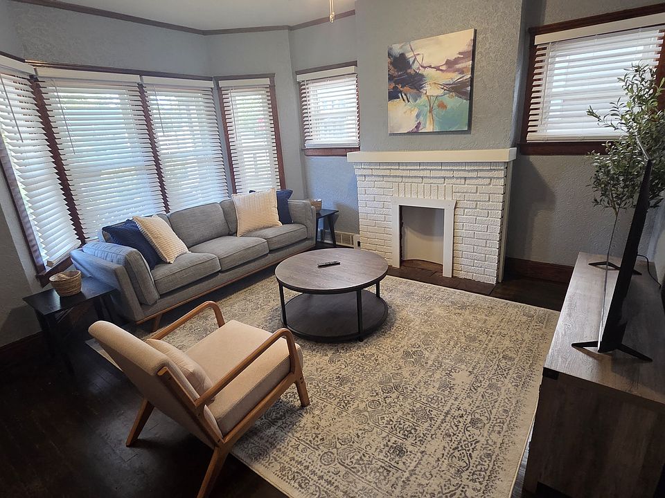 Available now! Well-maintained and updated lower unit with 2 bedrooms and 1 full bathroom. Living and dining spaces as well as bedrooms complemented with dark hardwood flooring. Fully equipped kitchen stocked with dishes, utensils, pots and pans, microwave, Keurig coffee maker and all essential appliances including a stove, refrigerator, and dishwasher. Renovated bathroom with tiled tub/shower combo. Shared laundry available in the basement. Fenced back yard. Pets are permitted (fee applicable). Driveway parking.