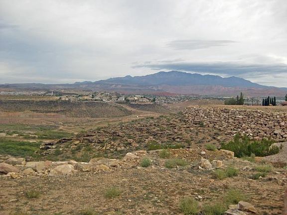 Rim lot in Stone Cliff! Western views of red mountains, lava bluffs, and downtown St George. Quiet, peaceful street on which to custom build your home w/ an endless view