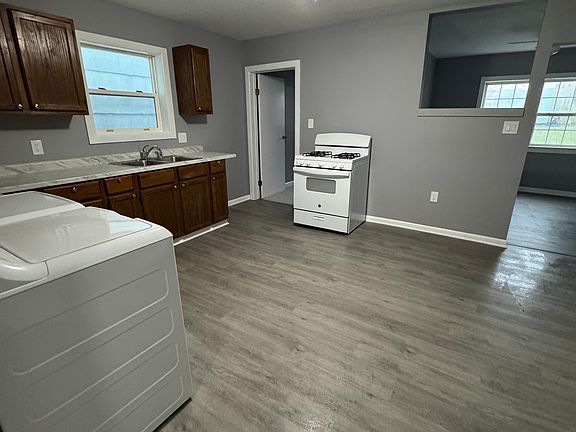 Fully remodeled, first floor apartment. New washer, dryer, stove, refrigerator, LVP, flooring, and bathroom, kitchen and living room, bedrooms are carpeted. New ceiling fans in all rooms. New countertop in the kitchen. Freshly painted. New carpeting in both bedrooms. Everything is new in the bathroom, including tub surround. Natural gas heater, and stove. Wall air conditioning included.