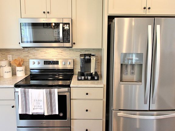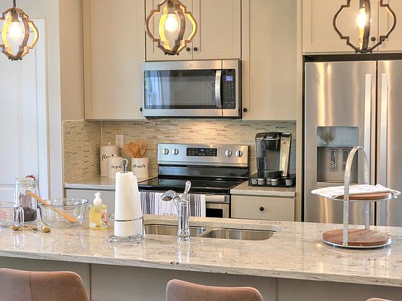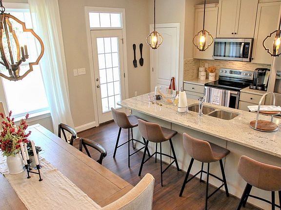Spacious 2 Level, Garage Townhome with Open Concept Main Level & Bedroom Level Laundry! This 2-Level Litchfield II townhome offers an attached 1-car garage, boxed oak staircase, open concept living with 9 ft. ceilings and beautiful luxury vinyl plank flooring throughout the entire first floor. Upon entry from the covered front entry, you are greeted with a gracious foyer that leads to the spacious family room and is open to the well-appointed kitchen offering a large island, stainless steel appliances, Quartz countertops, and an adjoining breakfast area. The expansive owner's suite features a sitting area and a generous walk-in closet. The luxurious owner's bath features a dual sink vanity, step-in shower with seat, and private water closet. Two generous sized secondary bedrooms, full bath with dual sink vanity and conveniently located laundry area complete the upper level.