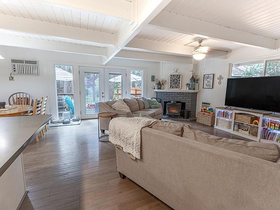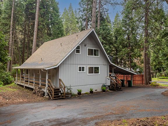 Nestled away in the pines, this updated, turn-key home will brighten your day! Enjoy your private seasonal stream in the backyard, either from your back deck or through the large living room windows. There's plenty of room for your vehicles on the spacious level parking pad out front, and a covered carport to the side. When you walk into the home from any of the 3 entrances, you'll be astonished at the upgrades including a brand new water heater and also upgraded electrical panel! Large, open floor plan downstairs, with the kitchen, living room, a guest bedroom and full bathroom with newer floor. Next to the kitchen is the functional laundry room with outside access. Head upstairs to find the second bathroom and two more bedrooms, one being an open loft-style layout. Don't forget about the Crystal Falls Ranch HOA! You have access to both lakes, the beautiful Crystal Falls, stables, basketball and tennis courts, the large clubhouse, a gym, and a community garden! If you're looking for a peaceful feeling with a touch of elegance, this home is for you! Professional to come on Sunday!