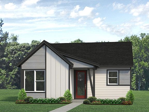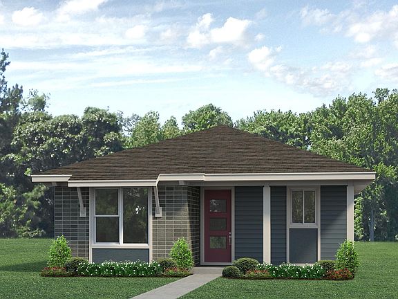 The Castlewood is a modern ranch style home which features 1,136 square feet and has a front covered porch and alley load two car garage. The entry of the home leads into an airy kitchen with optional center island and flows into a light filled great room with optional fireplace. The open concept living area is attached to a cozy outdoor patio which has an optional cover. There are 2 bedrooms in the Castlewood - a guest bedroom with adjoining full bath at the front of the home and a generous owner's suite at the back of the home. The owner's suite features a large walk-in closet, dual sinks in the bath area, and tile bath flooring. A laundry room located off the entry from the garage rounds out this functional and flowing ranch home. The Castlewood floorplan has the option for a 130 square foot zoom room, which is a flexible space attached to the patio by a slider and can be used for a variety of purposes. There is also the option for this area to be additional garage storage. The Castlewood floorplan has 3 appealing exterior elevation options available.