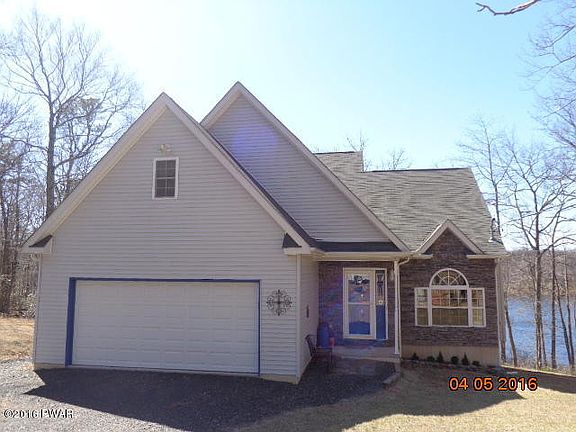 COLONIAL STONE FRONT HOME BEAUTIFULLY SET MID-LAKE. This privately set,barely used home offers water views from all bedrooms. Open floor plan with high vaulted ceilings and lots of windows in the Living Room, Dining Area with glass doors to deck and Kitchen w/ appliances. Master Bedroom with private bath on First floor, 2 additional bedrooms, bonus rm. and 2nd full bath on 2nd floor. Central surround sound system, 2 car garage, private 3 yr old floating dock. Owner anxious, will consider all offers., Beds Description: Primary1st, Baths: 1 Bath Level 1, Baths: 1 Bath Level 2, Baths: 1/2 Bath Lev 1, Eating Area: Dining Area, Eating Area: Modern KT, Beds Description: 2+BED 2nd