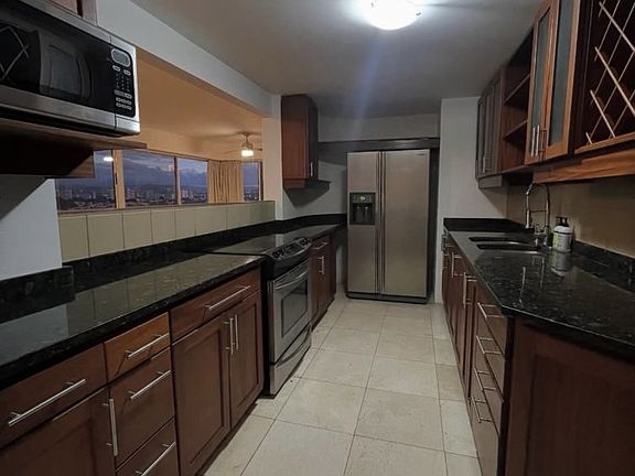 Cuenta con 3 habitaciones y 2 banos. Cocina completamente equipada con estufa con horno, horno microondas y nevera. Unidades de aire en cada cuarto, lavadora, secadora y calentador de agua de linea. Master room con amplio closet. Ventanal en la sala con lindas vistas a la ciudad. Balcon. Area de parque pasivo. Seguridad. Estacionamiento bajo techo. Renta de $2,800 mensuales (incluye agua).