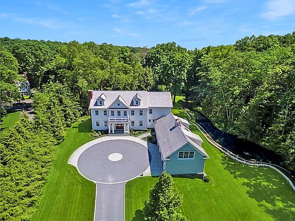 An entertainer's dream; taking Luxury to a whole new level. Quintessential New England Country Estate imbued with modern appeal and built to perfection. Situated down a picturesque tree lined driveway at the end of a private cul-de-sac in coveted lower Weston. Fabulously sited on 2 tranquil acres of rolling lawns on a serene setting overlooking the calming, babbling brook. The interior is chic, stylish and warmly inviting with over 10,000 sqft of living space, 6 bedrooms and 6.2 baths. State-of-the-art Gourmet kitchen with top-of-the-line appliances & gorgeous white marble counter tops. Sun drenched breakfast area and butler's pantry open to a stunning family room w/vaulted ceilings and fireplace. Expansive formal dining room and an elegant private study. Magnificent primary suite with his/her closets and luxurious spa-like bathroom with radiant heated floors. Tons of opportunity in the capacious finished 3rd level for rec/school room, 3 car garage and generator. Step to the lower level to experience an exciting, one-of-a-kind, sumptuous entertainment area with a sleek, modern-day speakeasy ambiance. Totally cutting edge appointments throughout featuring a fully fitted out gym, home theatre, air filtered cigar lounge with built-in Humidor, game room, full kitchen, full bath, potting room open to yard and an incredible piece-de-resistance wine cellar. Additional 2500 SQFT in lower level not included in sqft. Also available for Rent.