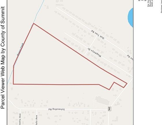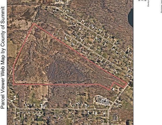 55+ Acres in Copley Ohio. Directly off of Copley Road. It’s a triangle shaped property with 138 feet of paved road frontage at the southern end and 1,600 feet (533 yards) wide at the north end. 1 mile from I-77. Mostly wooded with some open space at the back of the property. There is a small creek on the property. Mineral rights transfer. The land owner once received royalties but the well and storage tank have been inactive for many years. Utilities available at Copley Rd. Zoning is O-C “Open space conservation”.