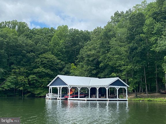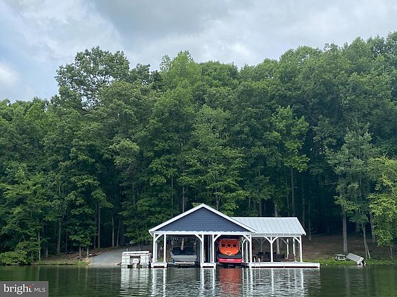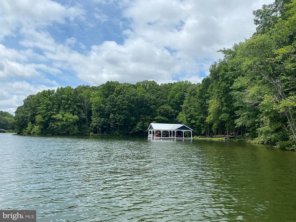 If you've been searching and waiting for the perfect Lake Anna lot you've just found it. Non HOA and very private. The boat house was just completed and it's like no other, featuring dark wood planks on the ceiling, stylish fixtures, herringboned patterned decking, rafter tails, sliding barn doors, shiplap walls in kitchen and antiqued metal in the eaves. There's a large sunning area, a large covered gathering area, a bar and kitchen, a storage closet, two covered boat slips with electric lifts, and a double jet ski slip (no lifts). Blue Hardie Plank exterior with white accents and a silver metal roof give the exterior much appeal. The lot is larger than most at 2.169 acres and the soil has been checked and accommodates a 4 bedroom conventional septic system. The house site sits close to the water with enough slope for a walkout basement, but an easy walk to the water. The water views are gorgeous. The property is within a no wake zone amplifying your peace and serenity. A deep well has been installed, a circular drive, and a boat launch. There's two water spigots on the lot and one fresh water spigot on the boat house. The drive in is bucolic, passing ponds and often much wildlife. This is a must see property. Agent is joint owner.