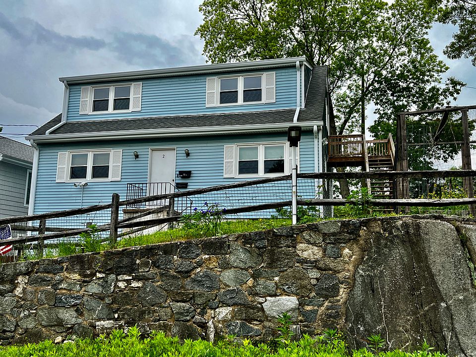 2 bedroom apartment on quiet, private cul de sac in Cos Cob. 1000 sq ft. Nice neighborhood. Available parking, less than a mile from train. Walking distance to beautiful wooded trails and Cos Cob center. 2 nice sized bedrooms, closets and 1 newly updated bathroom. Large, eat in kitchen with new kitchen floor, spacious living room. Hard wood floors. Gas heat and oven. New Pella windows. No animals (non-negotiable), Landlord lives on site. Credit check and references. 1st month plus 1 month's security.