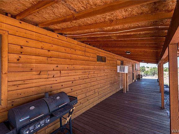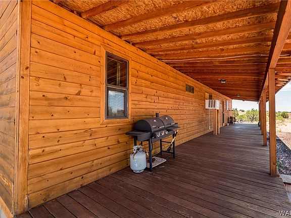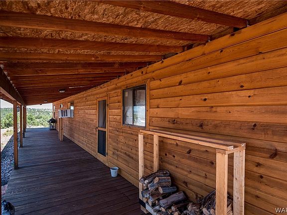 SELLER VERY MOTIVATED!! Great Opportunity to own a peaceful getaway! Very Nice, SOLIDLY BUILT wooden Cabin on 40 mile-high acres. This 1440 square foot, 3 bedroom 2 bath Country Home, with loft, was DESIGNED by owner to be FUNCTIONAL for Off-Grid Rural Living; and HANDSOME for the beautiful area. Solar and Propane powered; Water Haul with 4000 gallons storage. Catchment also possible. Front and back covered decks, 480 sq ft each, to enjoy the magnificent VIEWS! To the North, one can see near the Grand Canyon itself. Inside, enjoy the beautiful wood craftsmanship of the floors, doors, door frames, and ladder-stairs to the loft. Wood burning stove & wall unit for warmth. Open kitchen with plenty of cupboard space. Stove/oven needs to be hooked up. Needs Refrigerator. Utility room in the Cabin. Utility Shed of your dreams out back. Shown by appointment only. Please do not attempt to drive by without a Realtor; folks in the area watch out for one another. Zoning is Yavapai County, RCU-2A.