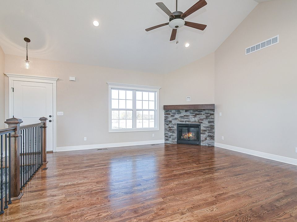 xperience the country charm of this 3 bedroom, 2 bath, 3 car garage open concept home. With 1,611 square feet, this home is situated on over 1/2 an acre of space, viewing beautiful lakes out the back from your covered porch! Wide open spaces both inside and out. Gorgeous custom kitchen cabinets w/stainless steel appliances.