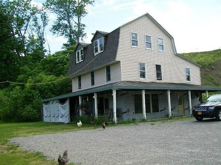 This early 1900''s home was lifted, a new concrete slab put under it, and a large addition built in the early 1980''s. Finish to your taste. Nice country setting, big wrap around porch, ample room for horses, chickens, gardens. House is lived in, all systems working, needs flooring, some sheetrock. There is a drilled well, plus a dug well. Current owner used the detached 2 car garage as a horse barn. Easy drive to Cherry Valley, Cooperstown, thruway in Canajoharie. Much potential. House on 7.06 acres, ROW to 6.57 acres. Additional land next door ( gravel pit), 1.63 acres can be purchased.