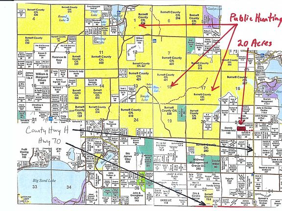 Have you been looking for an affordable hunting parcel? This one should check most of the boxes. This 20 acre parcel sits between 2 Ag fields and is a travel corridor for deer. The property was cut 15 years ago; but the trees have grown to 40' and are a mix of Red Oak and Poplar. This property is only a mile from the Yellow River and offers excellent hunting for Deer, Turkey and Grouse. Tons of great fishing Lakes close by. You are only 1/2 mile away from over 10,000 acres of public hunting!! Only 20 minutes from Siren and Spooner. 90 minutes from the Twin Cities and Hudson Wisconsin.