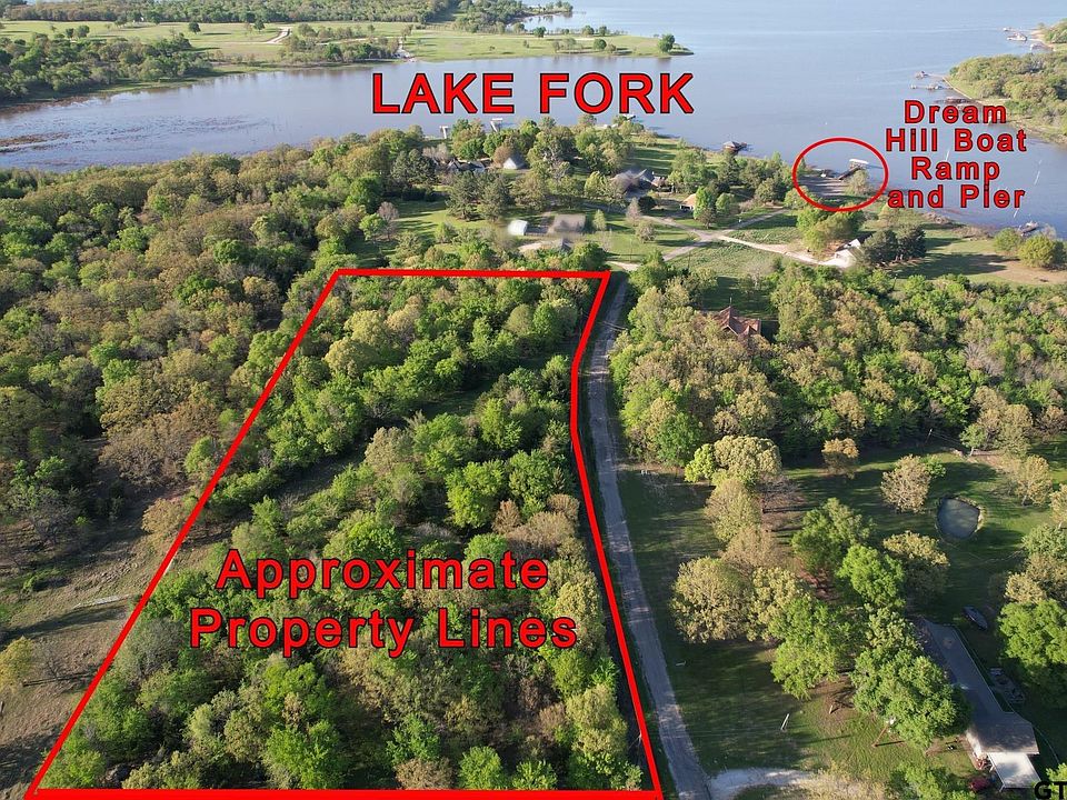Located in Dream Hills Subdivision, here is 5.4 acres, within walking distance to Lake Fork. The community boat ramp is just a stones throw away from this lot! Lot is mostly level, heavily wooded, other than the cleared area with pipeline running thru the property but, there's still plenty of land to build on! Great view of Lake Fork from several sides of the property, this would be a great place to build your custom home, with enough distance between neighbors to have some privacy! This is a great, well established subdivision with nice homes in the area! Bring your best offer! Buyer to verify any and all information.