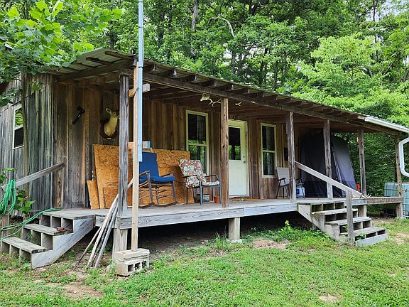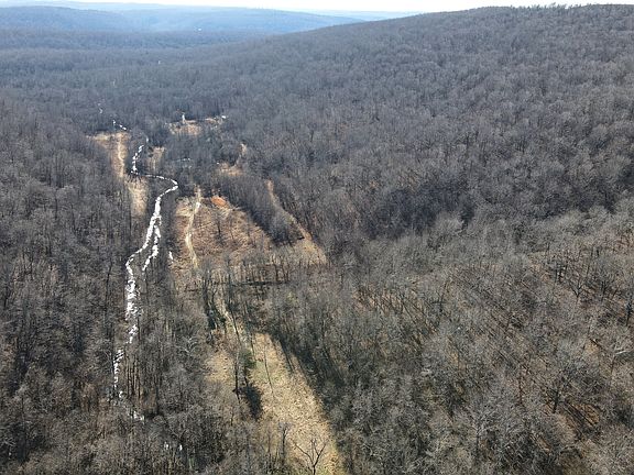 This rare find is full of the essence of the Ozarks, with ample opportunities for the survivalist, hunter, or nature lover. This property has been managed as a hunting tract for almost a decade and is loaded with whitetail deer, black bear, wild hog, turkey, and all sorts of small game. With rolling hills and lush bottoms, this combination has set up the ideal hunting tract with a mix of large timbered benches, funnels, pinch points, saddles, and creek bottoms with food plots. The trail system was cut in several years ago and is navigable by ATV, UTV, or tractor. A Mahindra 4110 tractor, all the implements needed to maintain the place, storage container, generator, and more are conveyed with sale! (List of conveying personal items provided upon request) The base for the trail system is excellent and aids in navigating all over the acreage, gaining you access to high ridges above, the rolling slopes of massive white oak timber, and the fertile creek bottoms below. Approximately 7-8 acres of food plots have been established, and just need a little TLC to get them back into shape. Pear, apple, and other fruit trees have been planted along several of the food plots, providing even additional food. Four custom-built 6'X6' elevated box blinds are in place and ready for your next hunt overlooking several thickets and existing plots. Large oak-covered flats flow through the property, creating dozens of usable hunting areas for guns or bows. A large spring-fed pond sets just above the plots and provides ample water for when the stunning wet weather creek does go dry in the summer months. Strategically located near the entrance gate of the land is the 12'X32' site-built off-grid cabin with a large covered front porch. This gem is insulated, wired with lights, has a small kitchenette, A bedroom, and overlooks the heart of the property. It is set up for a generator and is plumbed for propane. Setting on the porch overlooking the private oasis gives you a sense of stepping back in time and getting away from the world. This is truly a hunter's dream or the perfect getaway. The one thing in real estate you can't duplicate is location, and this place is ideal, with an immense amount of privacy with timber tracts, mountains, bluffs, and hills all surrounding the land. Don't wait to see this one; call today.