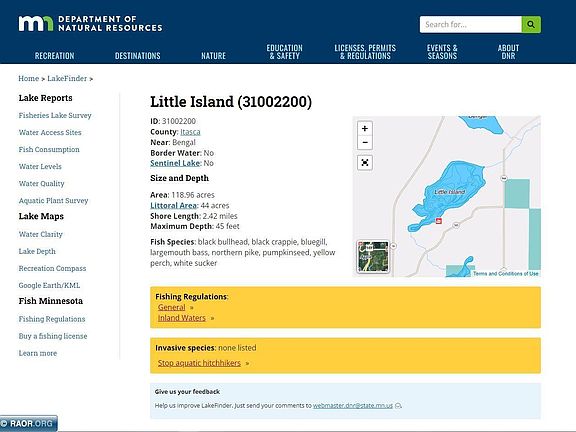 Very nice 3.49 acre lot with 416 feet of lakeshore on Little Island lake - just SW of Hibbing! Great spot to build a cabin or year round lake home!