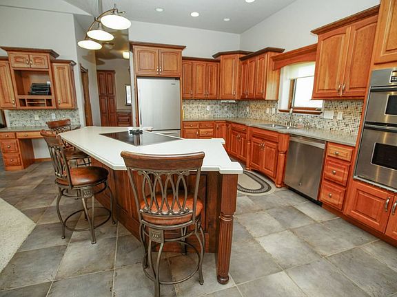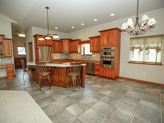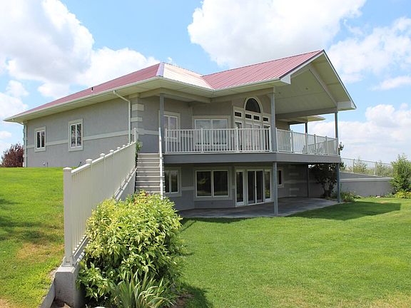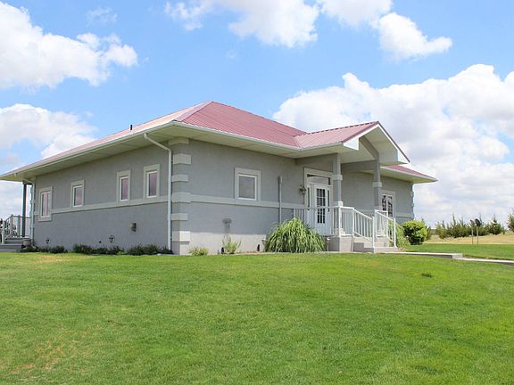 This beautiful custom home estate is a Must-See! It sits prominently on 9 private acres with spectacular sunrise and sunset views. The main floor master suite flows nicely and is very spacious. The beautifully appointed kitchen with a large island is sure to be the centerpiece for family gatherings. A large laundry / utility room is located conveniently on the main floor. Downstairs you will find a fully finished walkout basement complete with additonal bedrooms and baths, plus a very large and open rec room area. The very large detached garage is perfect for protecting your vehicles from the elements on a daily basis, plus storing your lawn tractor, atv, or boat. It's literally large enough to also set it up with your very own work shop. The 9 acre parcel with the house and detached garage for sale in this listing is depicted by the dotted-white lines on the north side of the map. Please note that the additional 370 acres along with barns and corrals depicted within the solid-red lines in the map is also for sale by the same owner. See the listing named Sedgwick County Road 24 Farm