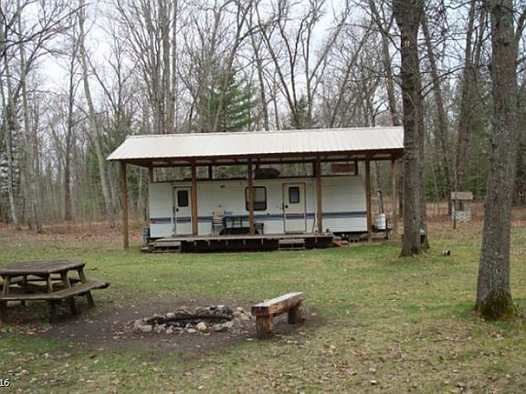 40 wooded acres, adjoining State Land on 3 sides with Brush Creek flowing through the property. Seller has brought electric in to campsite area and they have private access in to their property. Sale also includes a 1996 8x31 very clean camper trailer in great condition with two bedrooms, kitchen, and living room. The camper has a roof/pavilion built over it. There is also a 4" well. Property is well wooded with deer blinds and food plots and located within minutes of Ess Lake, Long Lake, Lake Avalon and Grass Lake all with public access for you to enjoy fishing or boating. Snowmobile and ORV trails are close by as well.