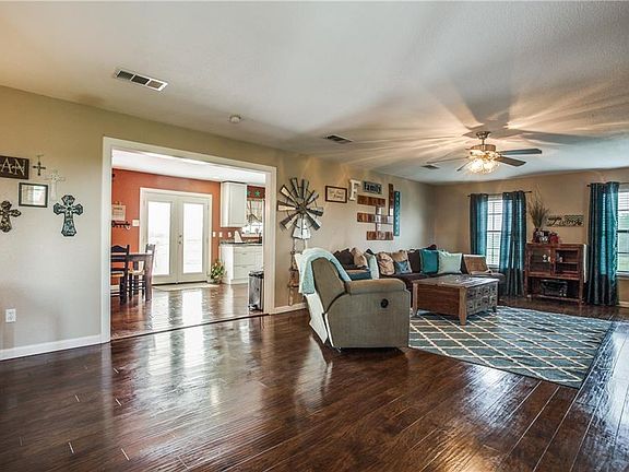 Welcome to your piece of Americana! Fabulous 4BR 3.1BA on 9.5 Acres! Sellers relocating! Large covered front porch and large back deck from which to watch the colorful country sunsets. Eat in kitchen with tons of storage and walkin pantry. Master down with 2 full baths up. Utility room with sink and room for folding and hanging laundry. Large storage space under the stairs. Detached 36x24, 2 car garage with built in storage. 24X24 Shop with electric and built ins for storing tools and space to complete the honey do list! 18 miles to HWY 75, near the OuterLoop expansion site. Quiet, stars galore, land to roam all with easy access to your city job! Buyer and Buyers agent to verify information and measurements.