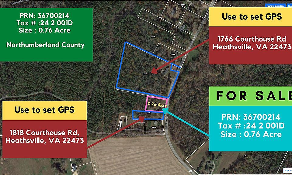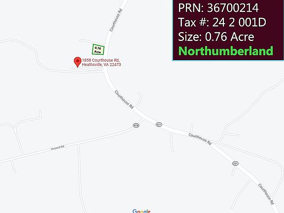 Deep Discount: 0.76 Acre Beautiful land in Heathsville, VA This 0.76-acre lot on Courthouse Rd of Northumberland County is waiting for you! This property is wooded with generally level topography and offers many great amenities, privacy, and serenity which would make it an excellent addition for surrounding landowners or would provide a great opportunity to build your Northern Neck getaway. The seller is highly motivated, the property is priced well below tax assessment and all reasonable offers will be considered. Don’t miss your opportunity to own this Northern Neck gem. Location: The closest street address is 1818 Courthouse Rd and 1766 Courthouse Rd, Heathsville, VA 22473