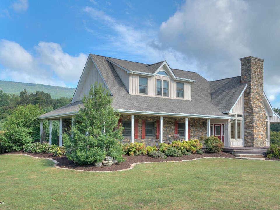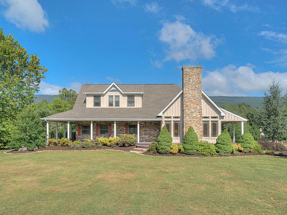 Incredibly special Cape Cod with over 23 acres of sprawling, level land suitable for keeping horses with panoramic mountain views! Close-ups to be had of your horses from the property's covered porches, not to mention the pleasant sunrise & sunset vantages. Accessible horse trails. Full frontage on trout-stocked Craig Creek makes for great pasture land. In addition to the 5680 square foot of living in the main house, the property also hosts a generously sized guest house with rustic accents & every comfort to offer your family, friends, & guests! Imagine the comfort & warmth of a quaint B&B, add in such luxuries as cherry cabinets, granite counters, cathedral ceilings, stone fireplaces, hardwood & so much more, and this is what you have -one of the loveliest homes in Craig County!