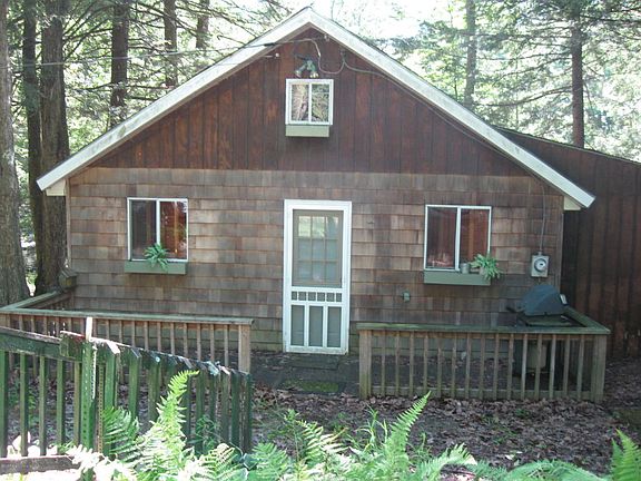''Super Cute Cottage''on secluded Cranberry Lake.3 small bedrooms with lvrm & appl. kitchen.1.5 baths plus enclosed front porch with screens.Stairs to attic with more space for sleeping.Vacant ground across road can be developed for parking,garage,shed etc.Nice dock on the 80ft Lakefront.Cottage comes completely furnished.Lake Association monitours water quality,road maintenance & stocking of fish.Association dues are $100 a year and there are Bi-Laws.Non-motor boating lake.All OGM rights convey at closing.