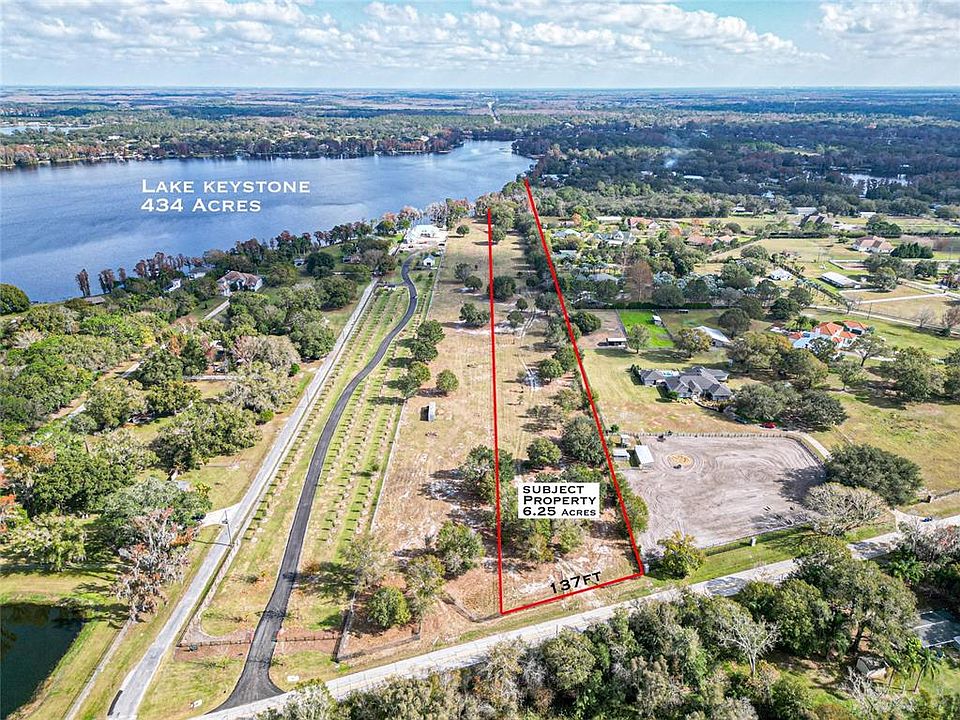 Remarkable 6.25 Acres on Lake Keystone with over 400ft of lakefront. This property is unique in that it has dual zoning. Approximately half of the lot is zoned Agricultural (the half nearest Crawley Rd) and the other half is zoned ASC-1 (nearest the lakes edge). This property offers the possibility of procuring a green-belt (property tax savings) if one chooses to seek. Consult with Hillsborough County on this possibility. Equestrian / Lakefront combo! For those Equine / Lakefront lovers, enjoy the best of both worlds with this gem. Measuring down the center of the property from Crawley Rd to the lakes edge is approximately 2,200ft. The optimal location to build a custom home, guest house, etc…is approximately 1,750 ft from Crawley Rd. This equates to privacy and seclusion! Build a detached garage / hobby shop / etc, there is more than enough room. The neighboring lot "could" be sold as a package, which would be an additional 5.85 Acres with additional 220ft of lakefront, which would be 12.1 Acres with over 628ft of lakefront. Lake Keystone is the largest lake in Odessa at 434 Acres and is considered the “Premier” lake. Residents enjoy 4th of July fireworks each year and Christmas boat parades. Lake life never gets old! Schedule you showing today.