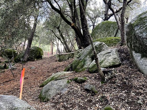 .41 Lot with Natural Beauty: 1.5 miles (4 minute drive) from the center of town is a .41 acre lot with mature trees and beautiful large boulders, beautiful seasonal creek giving this property a very special, untouched feel. Topography report and percolation test are done. Come build your dream home.