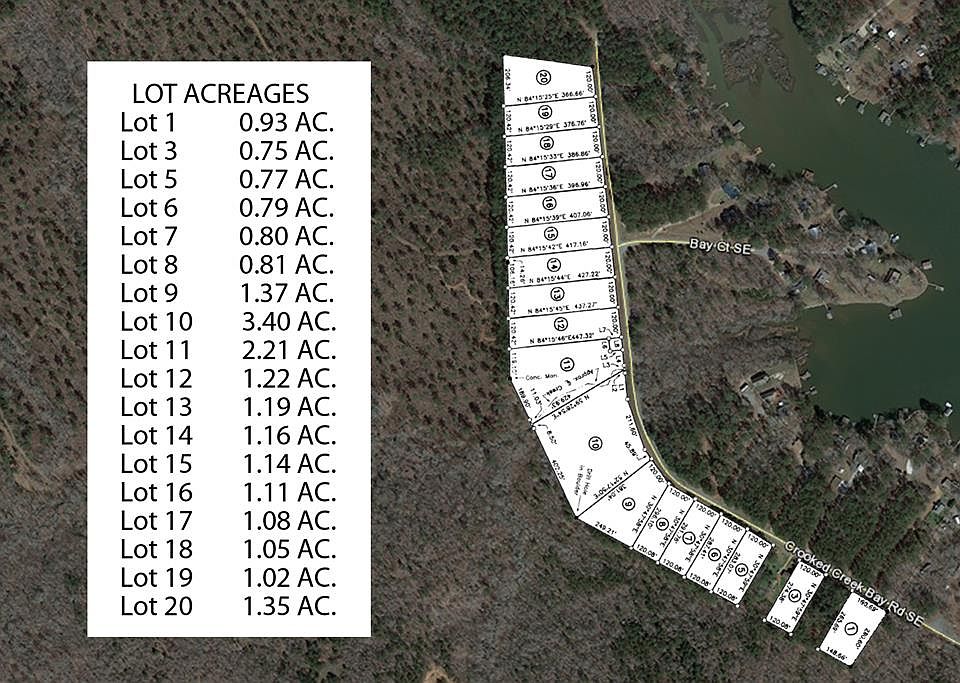 These are 18 platted lots with a total of 22.15 acres. Lots range in size from 0.75 to 3.40 acres. Property would be ideal for developer. There is convenient lake access at Crooked Creek Marina approximately 1 mile from property. Call for more details.