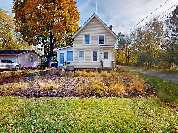 HUGH 1/2 ACRE IN TOWN LOT Incredible potential, incredible opportunity, in this Home or both Business Bring your modern farmhouse ideas to this 3 bedroom, 2 bath home with 1/2 acre in town lot!! Plus a large 2 car garage with plenty of room for your tools, truck and toys. Business possibilities due to location!! Long driveway with a parking pad too! Roof 2020 and furnace and air 2021. Did I mention the 1/2 acre along with natural plantings through out for pollinators to do their thing! Also a Fenced food garden for those fresh season veggies and fruit. A big plus with todays food cost. Open kitchen with ample cabinets and counter space. Stunning exposed beams in the family room with a cozy fireplace. First floor primary bedroom with full bath just across the way. Light filled sun-room just waiting for your inspiration! Soak up that fresh air while relaxing on the lovely patio. This home is conveniently located near shopping, restaurants and with beach rights both at main lake and Three Oaks! BEING SOLD AS IS.