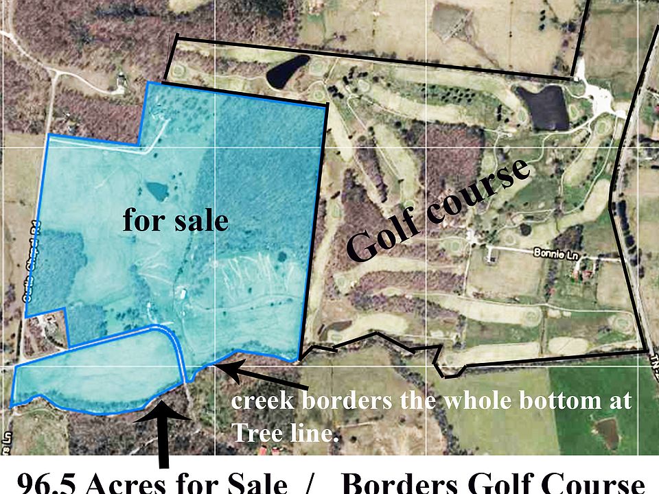 There is 96.5 Acres. The land borders the willow ridge golf course on 2 sides of the property. 3269 feet of golf course frontage. 4106 feet of road frontage on the other sides of the property. 5678 ft boarder trace creek. Plenty of fields / pasture. Land is fenced and cross fenced. Approximately 28 acres of timber. 2 Ponds. One is great for fishing big mouth bass. Large tobacco barn, coral, head gate. corn crib. Land already has electricity with 2 separate meter boxes. 2 septic systems, & and RV dump. Already has drive way. There is a house on the property also that can be negotiated into the sale if interested. Picture are shown of the property and the house that can be sold with or without it. Price is listed without the home.