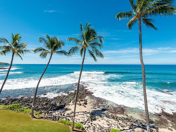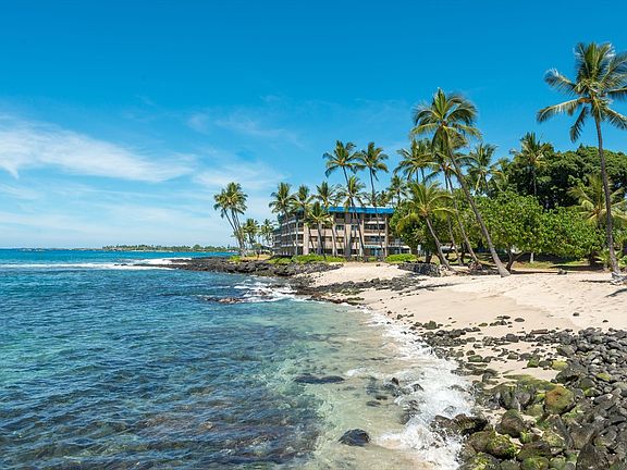 Top-Floor, Direct Oceanfront, Penthouse Unit with Stunning Views of the Surf Break and Kailua Bay. Watch Cruise Ships come and go from your Covered Oceanfront Lanai. Air-conditioned 1-bedroom, 1-bath unit with additional Murphy Bed option in Livingroom. Wood Cabinets, Corian Counters, Newer Appliances. Ceramic Tile Flooring in Kitchen, Entry, and Bath. Carpet in Livingroom and Bedroom. Bath has Ceiling with Crown Molding and Tile Trim. This Popular Vacation Rental is Sold Turn-key Furnished in Tropical Décor. Oceanfront Unit D-34. The Kona Reef Complex is located just south of town, adjacent to Sandy Honl's Beach Park. It offers an Oceanfront Pool, Spa, and BBQ Facilities. A Short Pathway through the Garden leads to the Sandy Beach nextdoor. The Concrete Buildings have Elevators and offer both above and Underground Parking. Long-term parking and additional storage is available subject to a short waiting list. Reasonable association dues of $581 monthly. Pets are not allowed. The Reef is a Very Popular Vacation Rental Complex. Short 1-Block Distance to Town, Restaurants, Nightlife, Shopping, and the Pier. Additional Beaches nearby. Attractive 30-year Fixed-rate Financing is available from local banks. Currently very easy to see! View a Video of Oceanfront Unit D-34 at the following site: https://player.vimeo.com/external/452002726.hd.mp4?s=ac861015b2b719b20ce2a95a7ac8160bfcb03a8a&profile_id=175