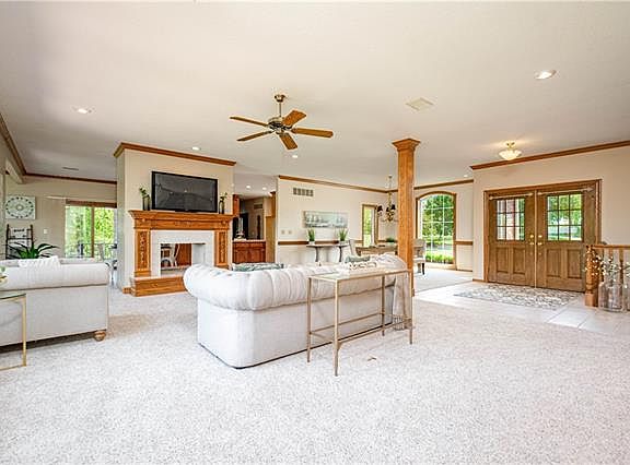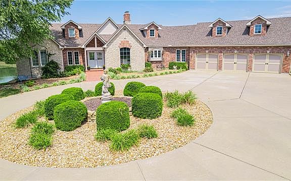 A hunter’s DREAM property just 35 minutes from downtown KC and on blacktop all the way home! Nicknamed Rabbit Holler, this property boasts a massive custom French Country home, two 30 x 40 outbuildings, a nearly 6 acre lake, a frog pond, and about 60 acres of mostly treed land ripe with wildlife. The stately home captures your attention the moment you pull up to the circle drive. Walk in and your eye is drawn to the floor to ceiling windows across the back of the house framing in the picturesque pond and treeline. The views carry on throughout the main level into the kitchen and hearth room to the expansive primary suite. The basement is another spectacular space to enjoy company with a wet bar, two guest bedrooms, another office and storage GALORE. Plus don’t miss the huge finished attic space perfect for any and all hobbies! There is also a hidden basement safe room with many possibilities for secure storage. Out on the land, there are endless ways to enjoy wildlife. This property is home to bass, blue gill, perch, catfish, deer, foxes, coyotes, turkey, yes rabbits, and so much more!