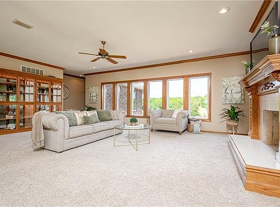 - Features: All Carpet, Ceiling Fan(s), Fireplace