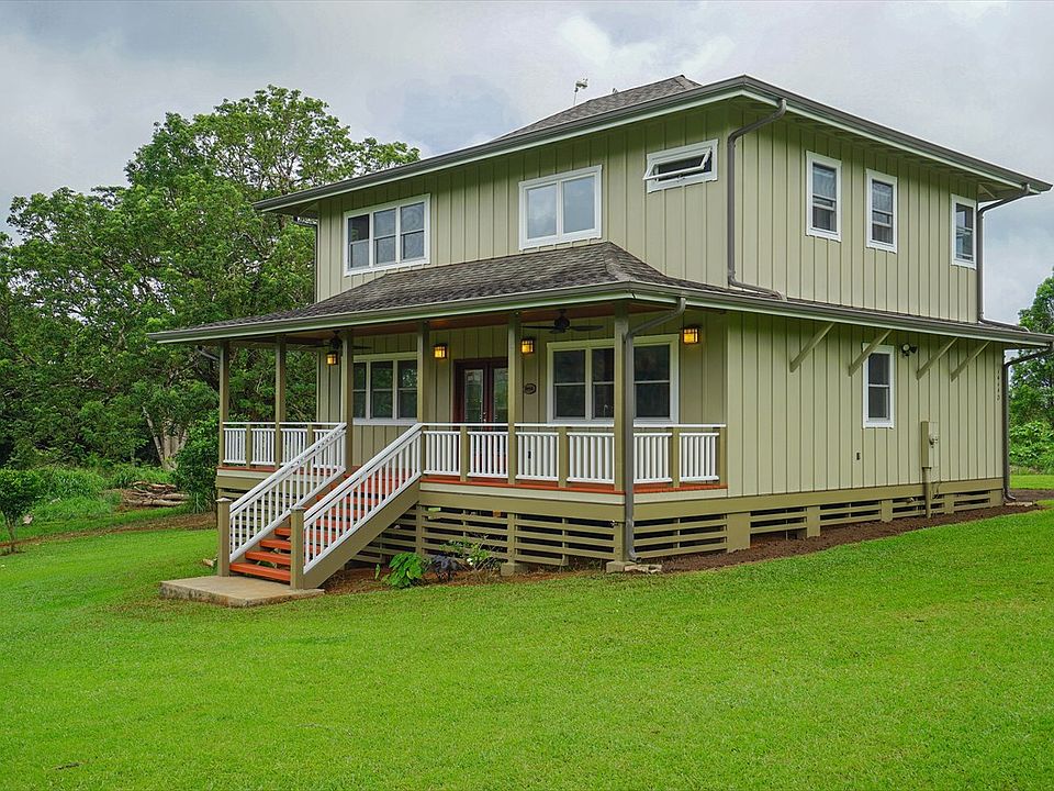 This home will not last long! Enjoy the privacy & quiet of Kapahi in this newer built 2 story, 4 bd, 2.5 ba home. As you arrive home, you will notice the quiet & surrounding views. There is a large open concept living area, living room, large kitchen w/ an island for plenty of prep/cooking space w/an area to dine, all while gazing out the windows at the Makaleha mountains. Great for entertaining or just enjoying the space for yourself. The home was completed in 2010 & is in excellent condition! The exterior was power-washed & interior walls repainted. The white trim throughout the house opens up each room. Just off the kitchen, there is a ½ bath on the 1st floor, a laundry room, & large pantry. There is a bedroom on the 1st floor, or turn that room into your office. Upstairs has three bedrooms, lots of closet space & a full hallway bath w/2 sinks. The Master bedroom has a large en-suite bathroom w/a large Jacuzzi brand jetted tub that opens up to the bedroom. Large walk-in shower for 2, walk-in closet, 2 sinks & a toilet room. All the rooms have large windows to see the views of Makaleha mountains. The large lanai runs the width of the house & allows plenty of room to relax & have your morning coffee or afternoon tea, facing a privacy wall of Eurekas & just above are expansive views of Makaleha. The large, fenced yard is over 30K sqft w/several fruit trees & plenty of room to let your pets run. The kitchen has beautiful granite counters, stainless steel appliances, a double electric convection wall oven, 6 burner gas range, custom vented range hood, & the convenience of a hot water dispenser. The floors are engineered hard Tiger Wood, providing a longer lasting durability & more stability in our wet Kauai environment. A solar vent on the roof helps with hot days & the solar water heater is plumbed for panels. Come see this home today, you will love living here!