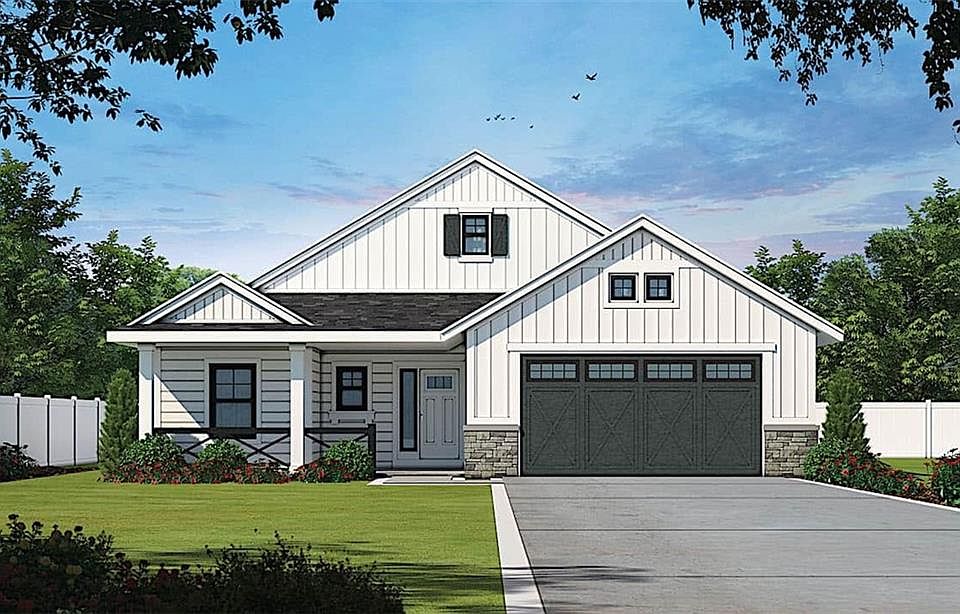 This beautiful contemporary home will make a perfect place to raise a Family. Sitting on 2.5 acres, there will be room for the kids to run, possibly even have a horse of their own. This home features multiple gables, a relaxing front porch, white vertical siding, stone accents, granite counter tops, hardwood in the living room and hallway, and tile in the bathroom and laundry. You'll also be able to pick a color for the home if you act quickly. With this open floor plan, coupled with the nine and ten foot ceilings, the space is utilized perfectly allowing for that comfortable homey feel. Split your Family time around the fireplace in the Winter and the covered front porch the rest of the year. The home also has an attached two car garage and plenty of storage. Don't hesitate, in today's market this one will go quickly.