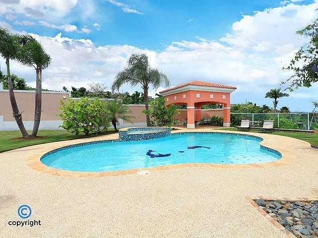 Indulge yourself in this entertainer's dream 2-story detached home at Quintas de Candelero. 4 mins. to Palmas del Mar. Tropical outdoor experience with pool, gazebo, palm trees, yard and some ocean views. Ample open concept design with 3,299 sq. ft of living area and additional 1,388 sq. ft of terrace and gazebo in a 1,177 sq. mt lot gives you plenty of space to enjoy with family and friends. Custom built with 5 bedrooms including a very spacious Master with walk-in closet, en-suite bath, private balcony & access to the impressive outdoor terrace. Additional 3 bedrooms with one being a Junior Master and another with very large balcony. 5 Baths. Breathtaking kitchen with Monogram SS Appliances and separate pantry room. Complete with foyer, side outdoor seating area, formal living and dining area, spacious family room with covered terrace, laundry room, and even a bonus room. 8K Power Gen, 800-gal. cistern, 2 car garage, equipped. Tennis, basketball court, pool and kid's playground..