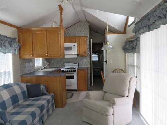 This is a great time to "staycation!" Plan your summer escapes to this well maintained park model home. Situated on three lots on the edge of Foxwood Hills gated campground. Enjoy private quiet time or walk to the lake for all the activities. Relax in the 9 x 16 enclosed porch or on the extra large deck. Create many fun memories here!