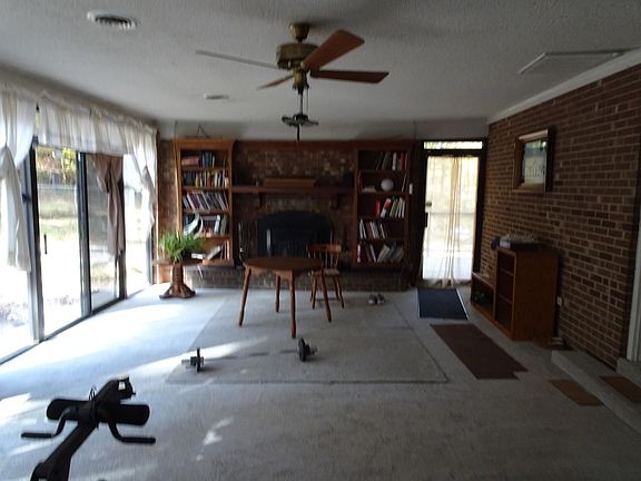 Sitting on 3.5 acres of land with a small creek on the left of the home, brick home with basement, spacious family room with fireplace, glass windows, built-ins, new carpet; Large living room, dining room with spacious closet, kitchen equipped with refrigerator, stove with hood, Three bedrooms and bath on the main level .Bathroom with double sink, tub and toilet. The basement has small kitchen area, an eating counter, washer and dryer, several rooms and a bath with shower, sink and toilet. The basement bath needs to be repaired. There is a basement outside door that leads to a wooded deck on the side of the home. There is also a wooden deck on the back of the home with access from the main part of the home. The grounds has 3 structures consisting of an older storage shed, an open three bay shed with metal roof, and another metal open shed.