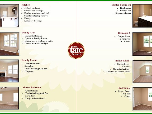 New Construction 3 Bedroom/2 Bath "Ranch Style" single story with Bonus Room. Family Room features Cathedral Ceiling, Fireplace and Luxury Vinyl Tile floors. Kitchen features Granite countertops, Stainless Steel appliances and Title Backsplash. Master Bedroom features Cathedral Ceiling and large walk-in closet w/ Master Bath including double sink, Garden Tub and Separate Shower. Bonus room above the 2 car Garage makes this model popular for today's lifestyle. No HOA !