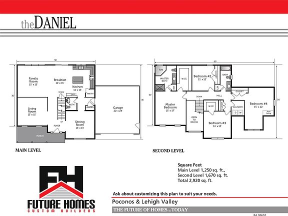 Can be built on your lot or you can purchase one of our lots. House pricing does not include lot, well, septic, or stormwater if required. The Daniel is a roomy 2 story home featuring a master bedroom suite and 3 additional bedrooms. The home also features a large kitchen with an island and spacious pantry. Future Homes offer buyers of new construction homes extraordinary value and an unmatched final product. Our custom and luxury homes are completely customizable by you the homebuyer. With our convenient showroom, vast selection or samples, and wealth of experience, we can assist you in designing the home or your dreams. The listed price is for the home only. The lot price, well, septic and stormwater costs are not included in the model prices listed as they vary depending on the lot.