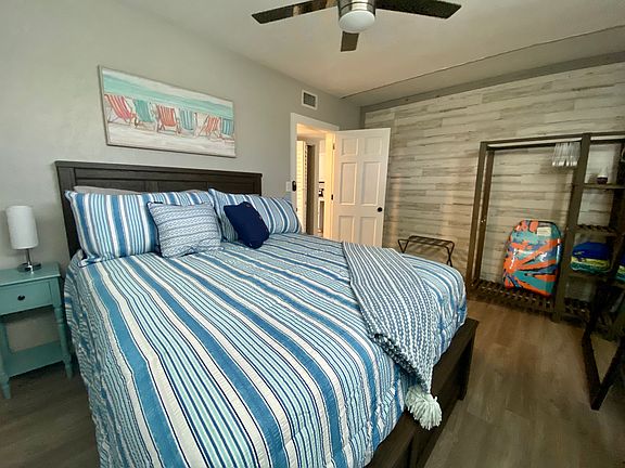 This is a duplex on the second floor walking distance to the beach, fully furnished with two bedrooms and one full bathroom. With a large front deck with water view. The duplex comes fully furnished with ceiling fanzine all the rooms and living room. The kitchen has full size appliances, smart televisions, washer and dryer. The water, internet and lawn care is included, with a back yard and plenty parking spaces.