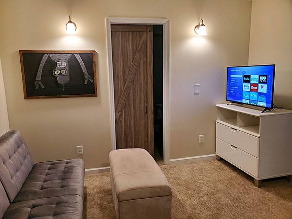 Enjoy this private 2-bedroom, 1-bath lower-level apartment in a quiet residential duplex. The thoughtfully designed space features a cozy living area, kitchenette, and two generously sized bedrooms each with a queen bed. A dedicated workspace and residents also enjoy access to a very spacious shared backyard and patio perfect for relaxing outdoors.