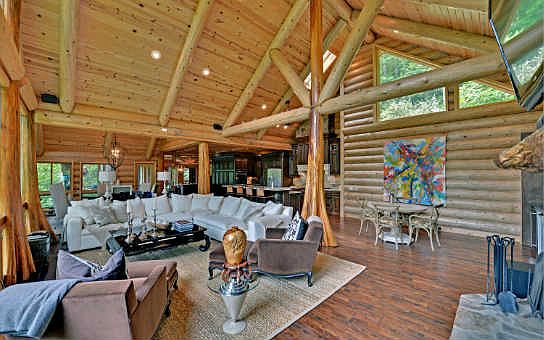 One of kind estate over 300' frontage practically sitting in bend of rushing river @ 60' wide! Totally private & engulfed by mtn laurel, rhododendron. Crusher Creek cascades into river below. Exquisite hdwds, cstm Rosewood doors, floor to ceiling encasement windows running span of back of home, 50+yr old Cypress trees as posts thru-out main. Mstr Suite: heated floors, private deck, coffee bar w/ wine cooler, marble heated floor in bath, custom cbnts, dble vanity w/ granite, steam, sauna, 2 water closets, fireplace over Jacuzzi, massive closet. Chef Kitchen: cstm cbnts w/ top granite, Wolf range, European pantry, sep coffee bar, bkfast room w/ wet bar/wine cooler. Open great room w/ massive stone fireplace & wall windows. Fish feeder best trout fishing in area!