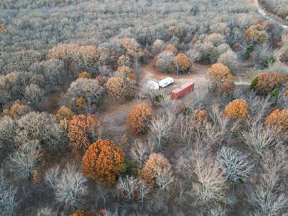The Okmulgee 120 is a perfect hunting tract with untapped potential. This property is almost 100% covered in timber and unique in that it primarily has a high canopy and is easy to navigate and see for considerable distances. There are areas of blackjacks and briars that provide the needed cover for wildlife but a majority of the property is oaks and hickory with a higher canopy allowing for great tree stand locations.. Topography on the property is subtle and lends itself to wide benches around the ridges of the property. This allows deer to travel and feel secure while also creating perfect stand and hunting locations to catch them browsing on the acorns or a buck chasing a doe during the rut. The draws and ridges give character along with the wet weather creek bottoms holding small pools of water for wildlife. There is a small pond surrounded by pines centrally located on the property also. You enter the property in the northwest corner on county road frontage with no other roads touching the property creating a secluded feel with the privacy we all desire. Just inside the gate is where camp has been setup with a storage container that will convey to the new owners. As you leave camp there are multiple trails that lead you all over the property. Even though there is already an established trail system so much more can be done connecting to other parts of the property. The southeast corner has a ridge with an incredible view of dripping springs lake. This is a predominantly south facing slope property ideal for holding deer. With the secluded access and privacy that this property offers it is definitely a winner. Dripping springs lake was built in 1975 and designated Oklahoma’s first Trophy Bass Lake. It is approximately 1,150 acres. Dripping Springs Lake is a fishing only lake with no water sports allowed. A property that literally touches a Trophy Bass Lake with the added bonus of deer and turkey hunting! This is the best of all the worlds!